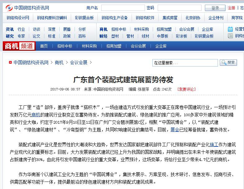南北潮商城網(wǎng)發(fā)布有關(guān)2017中國(guó)筑博會(huì)·廣州開(kāi)幕式的報(bào)道 (2017-10-30)