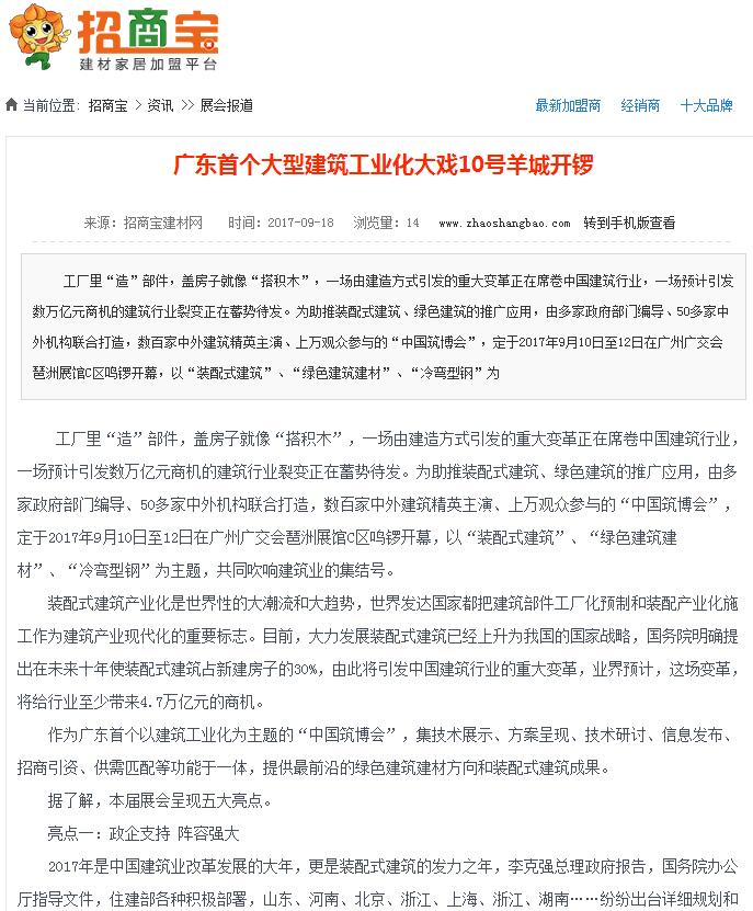 廣告買賣網發布有關2017中國筑博會·廣州開幕式的報道 (2017-10-30)