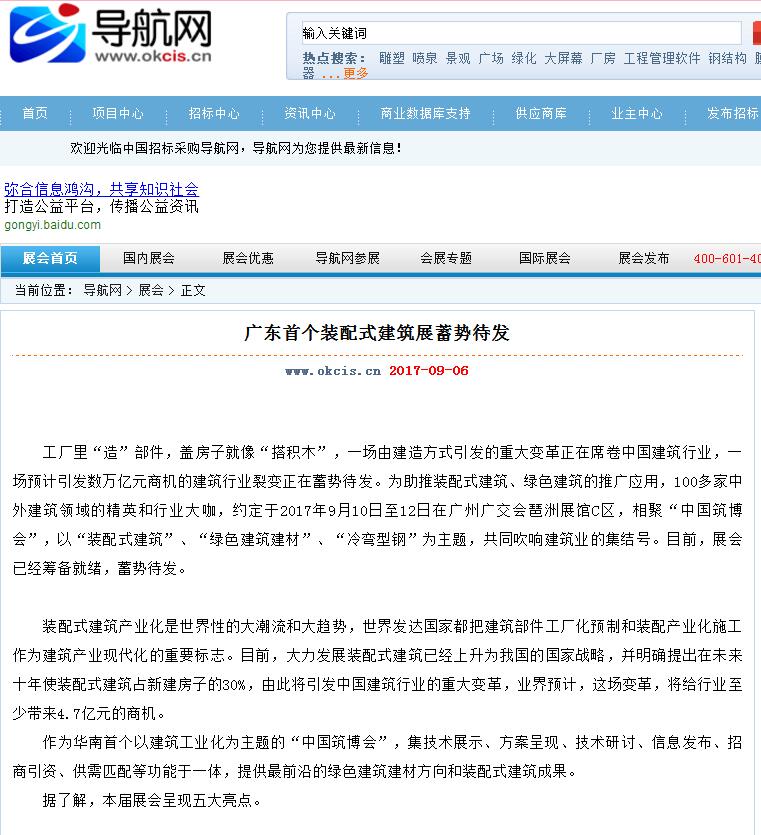 中國建筑工程信息資訊網發布有關2017中國筑博會·廣州開幕式的報道 (2017-10-30)
