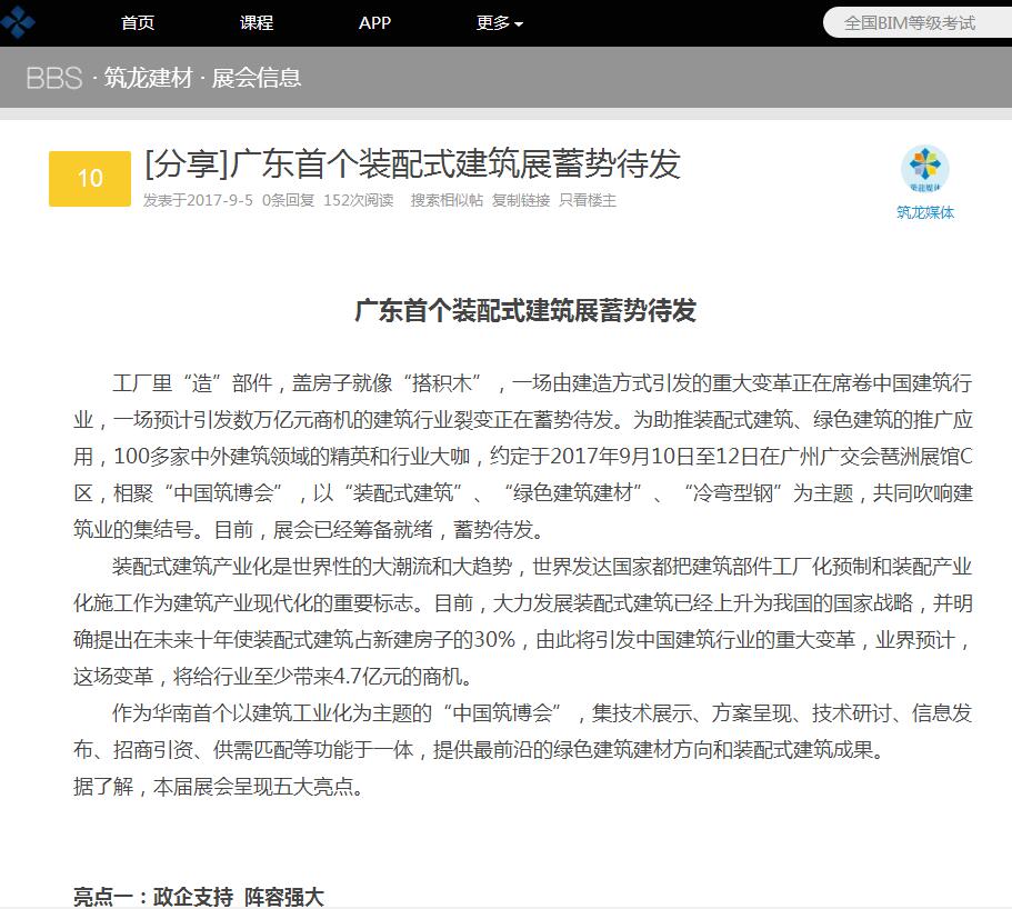 鋁博士網發布有關2017中國筑博會·廣州開幕式的報道 (2017-10-30)