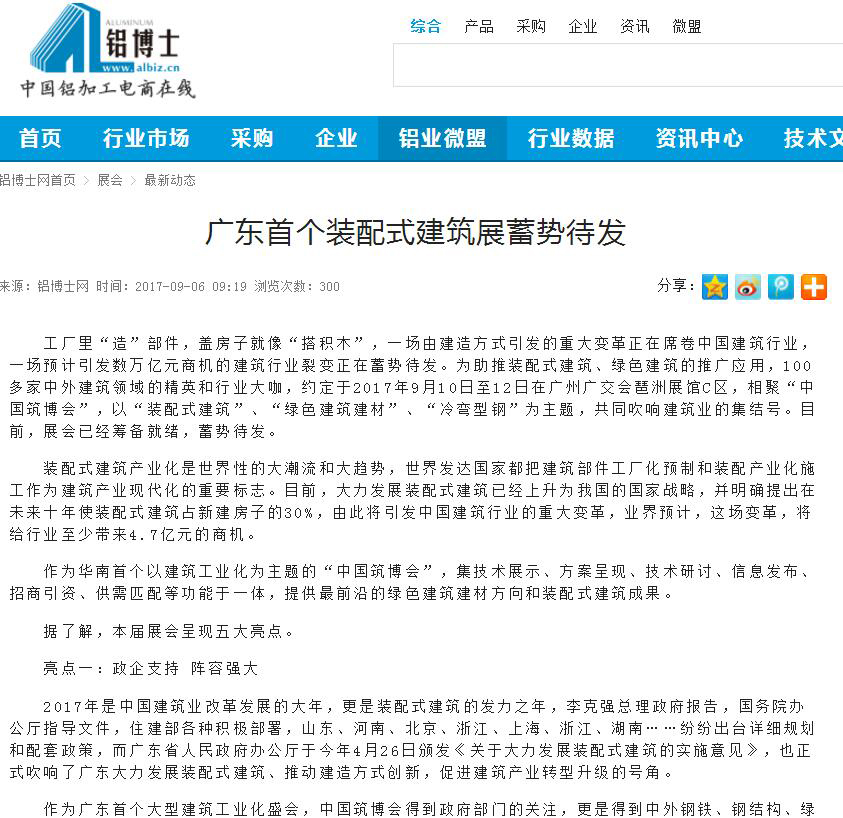 中國幕墻網發布有關2017中國筑博會·廣州開幕式的報道 (2017-10-30)