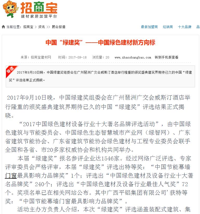 廣告買賣網發布有關2017中國綠色建材設備行業十大著名品牌獎的報道 (2017-10-30)