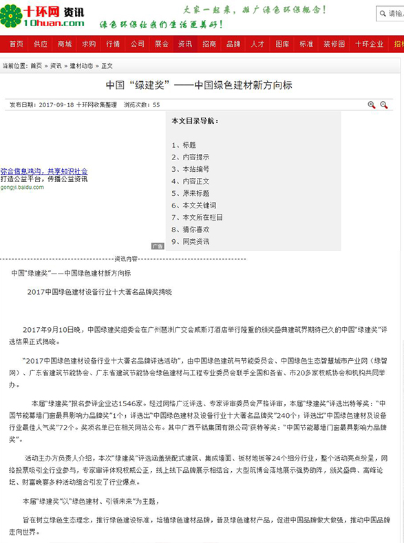 鋁博士網發布有關2017中國綠色建材設備行業十大著名品牌獎的報道 (2017-10-31)