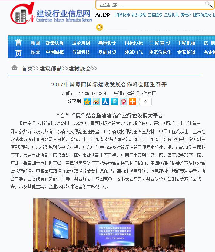 中國(guó)門窗幕墻資訊網(wǎng)發(fā)布有關(guān)2017中國(guó)粵西國(guó)際建設(shè)發(fā)展合作峰會(huì)的報(bào)道 (2017-10-31)