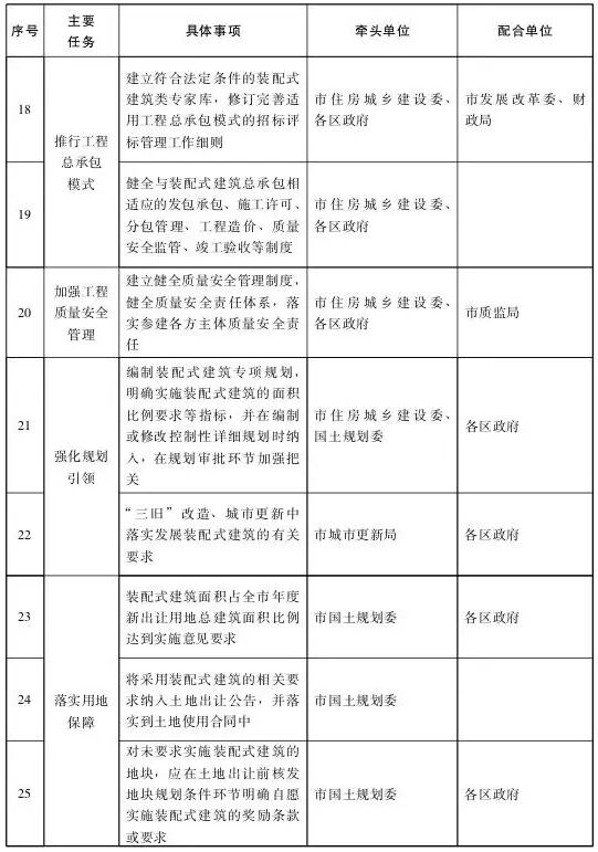 到2020年,實現裝配式建筑占新建建筑的面積比例不低于30%;到2025年,實現裝配式建筑占新建建筑的面積比例不低于50%。新立項的人才住房、保障性住房等政府投資的大中型建筑工程全面實施裝配式建筑。以招拍掛方式出讓用地的建設項目按比例實施裝配式建筑。綜合管廊、軌道交通、橋梁隧道等市政基礎設施工程推廣裝配式建造方式。