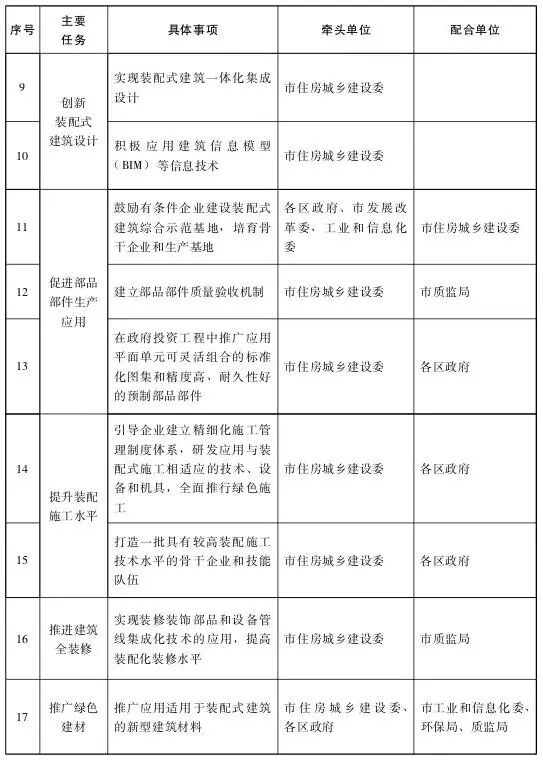 (六)提升裝配施工水平。引導企業建立精細化施工管理制度體系,研發應用與裝配式施工相適應的技術、設備和機具,提高部品部件的裝配施工質量和建筑安全性能。鼓勵企業創新施工組織方式,推廣應用鋁合金模板等新型模板,全面推行綠色施工。支持施工企業總結形成施工工法,提高裝配施工技能,實現技術工藝、組織管理的轉變,打造一批具有較高裝配施工技術水平的骨干企業和技能隊伍。