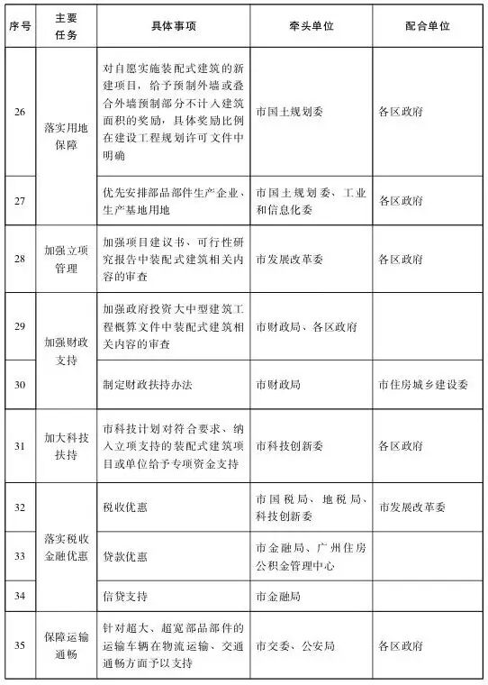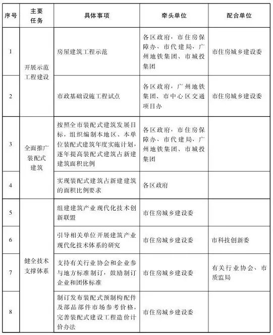 (三)開展監督考核。2018年起,各區政府及市住房保障辦、市代建局、廣州地鐵集團、市城投集團等應將本地區、本單位裝配式建筑年度計劃及實施方案于3月份以前報聯席會議辦公室。聯席會議辦公室組織開展裝配式建筑工作情況考核,定期通報考核結果。