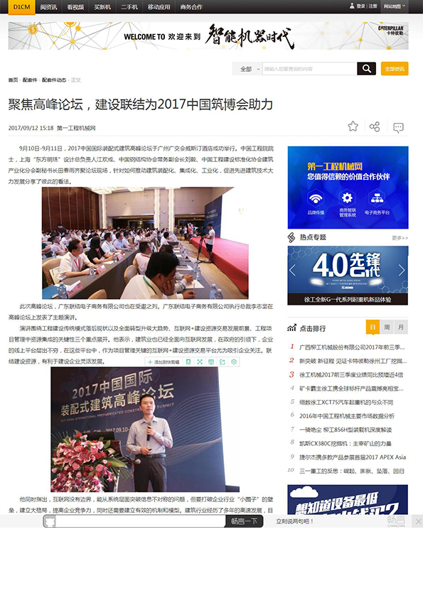 CBI網發布有關2017中國筑博會·廣州開幕式的報道 (2017-11-01)