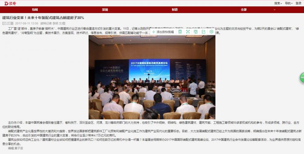 深圳商報發布有關2017中國筑博會·廣州的報道 (2017-11-01)