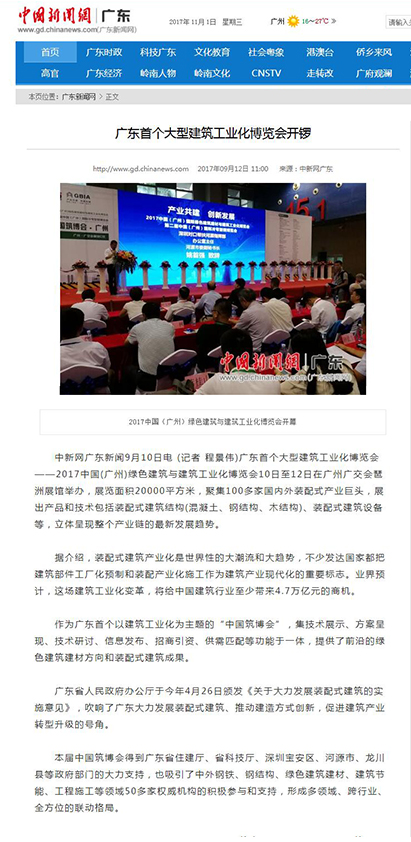 中國鋼結構資訊網發布有關2018中國(廣州)綠色建筑建材與建筑工業化博覽會的報道 (2018-01-25)