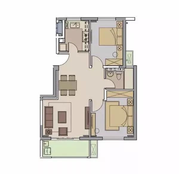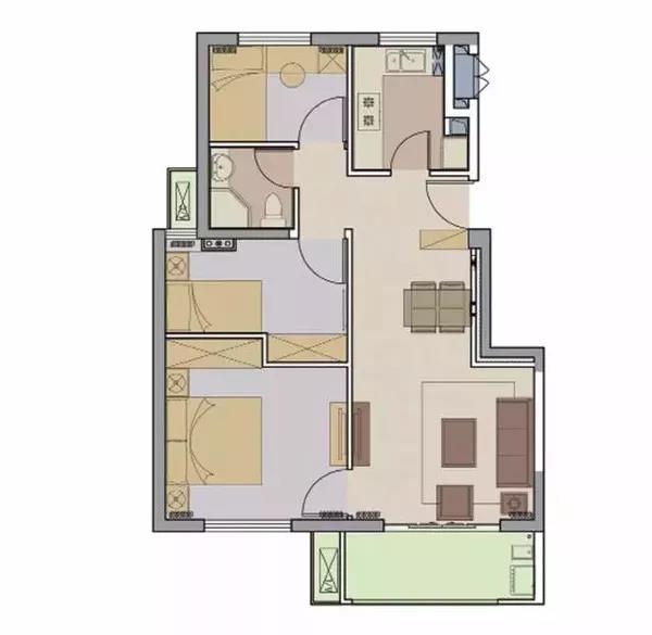 █戶型變化一:傳統(tǒng)的兩房兩廳一衛(wèi)