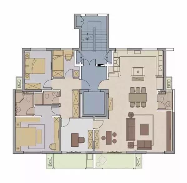 █戶型變化三:合二為一,四房兩廳三衛(wèi)改善型